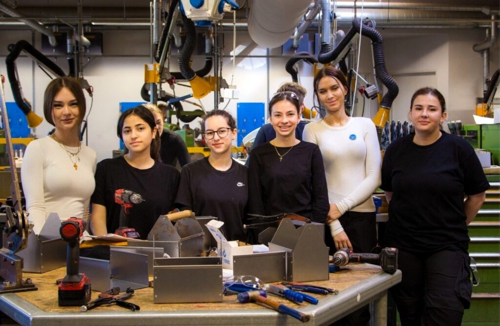 In den folgenden Tagen arbeiteten die Schülerinnen aktiv in verschiedenen Werkstätten, darunter Maurerei, Zimmerei und Schlosserei, und konnten dort ihre handwerklichen Fähigkeiten erweitern. Besonders spannend war die Zusammenarbeit mit dänischen Schülerinnen, bei der nicht nur handwerkliche Fertigkeiten, sondern auch sprachliche und interkulturelle Kompetenzen gefragt waren.