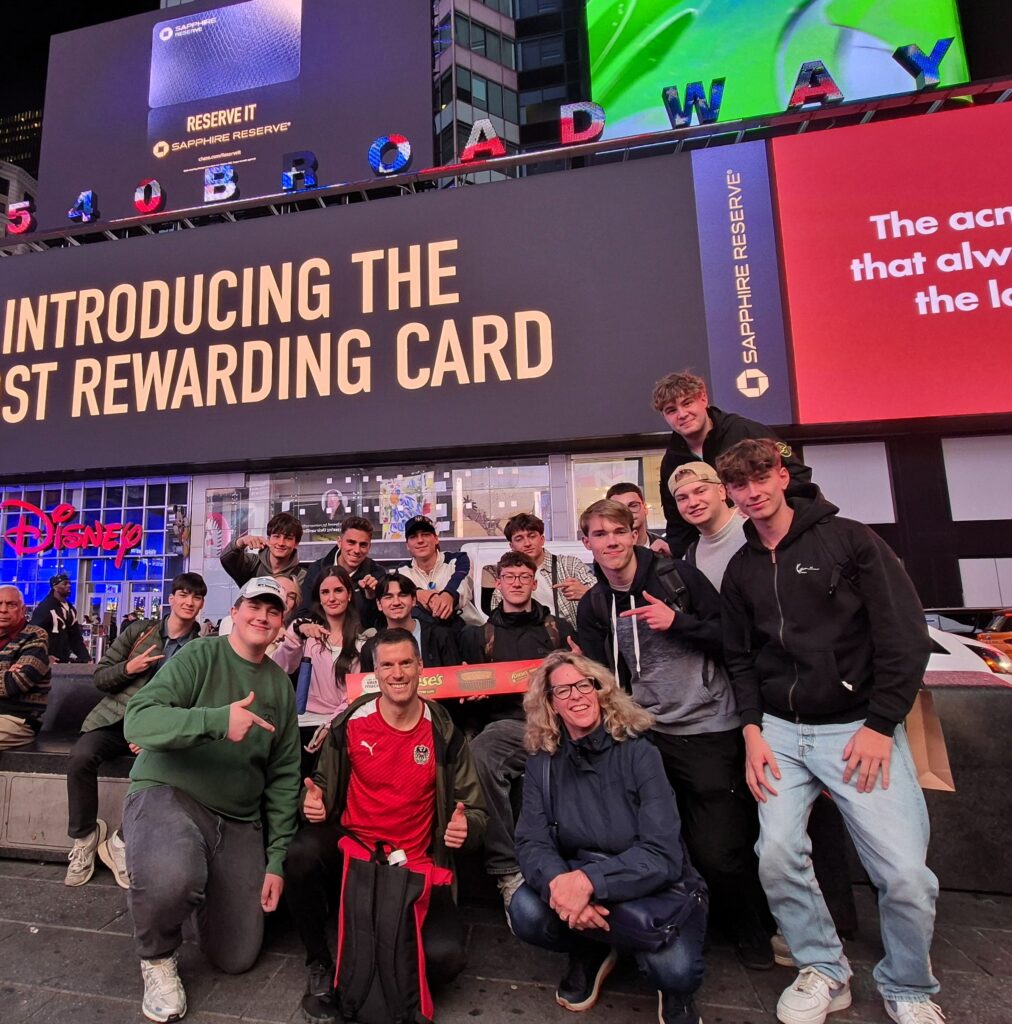 Vom 4. bis 12. Oktober 2025 unternahmen 13 Schüler und 2 Schülerinnen der 5BHBT gemeinsam mit ihrem Klassenvorstand Klaus Hausleitner und Englischlehrerin Andrea Reisinger eine ganz besondere Reise: Eine Sprach- und Sportreise in die aufregende Metropole New York City.